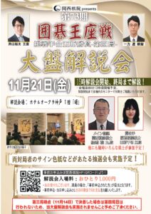 大盤解説会チラシ 第73期王座戦挑戦手合 井山裕太王座に一力遼棋聖が挑戦する「第73期王座戦」の挑戦手合五番勝負が、10月17日(金)に開幕します。 【主 催】 […]
