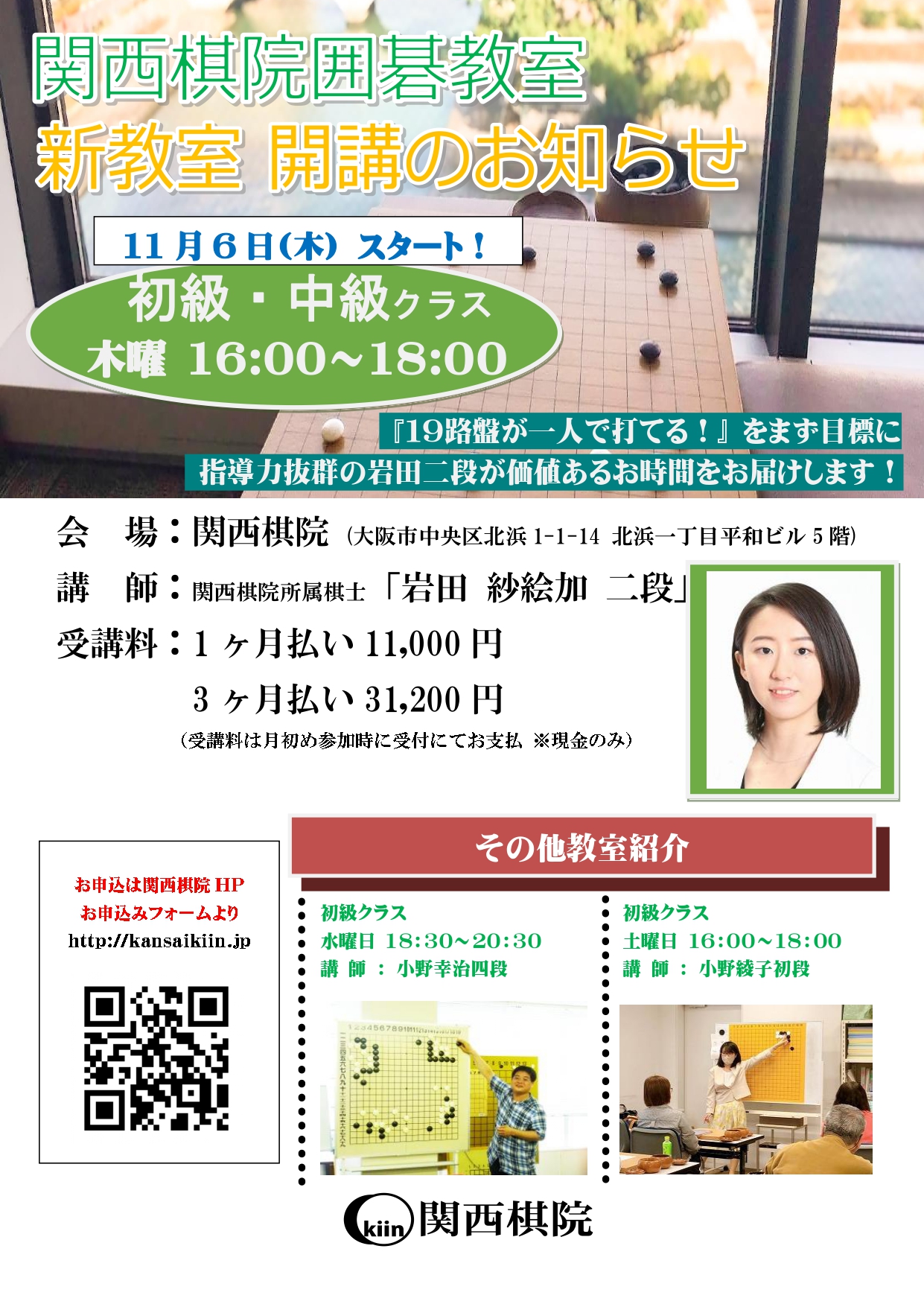 関西棋院 囲碁教室 新教室開講のお知らせ